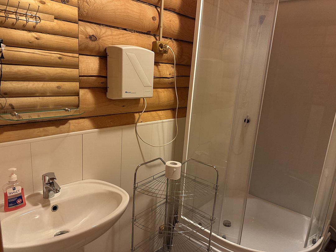 На втором этаже находится уютный холл с зоной отдыха и выходом на балкон, откуда открываются живописные виды на территорию базы и окружающую природу. Здесь же расположены и четыре комфортабельные спальни, каждая с двуспальной кроватью, телевизором, прикроватными тумбочками и вешалками. Второй этаж также оснащен ванной комнатой с душевой кабиной и санузлом.