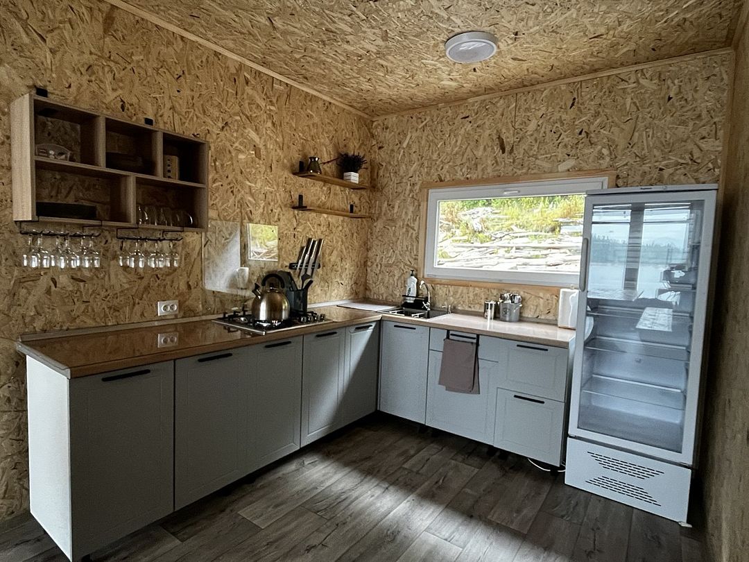 Постельное белье, вся необходимая посуда, дрова, холодильник, газ. плита, мангал с казаном, муз. колонка, электричество (солнечные панели).