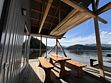 Комната отдыха с кухней, 4 спальни, баня, большой стол в доме и на улице, площадка для загара с шезлонгами.