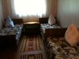 В комнате три полуторо - спальные кровати. Холодильник. Посуда.