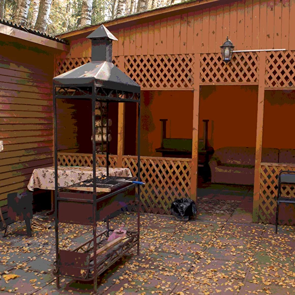 - мангал и печка с казаном для приготовления барбекю или плова;