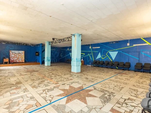 Большой концертный зал со сценой с прилегающим танцевальным залом.