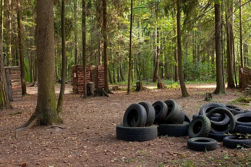 На полигоне масса построек: деревянные сооружения, башни, щиты, за которыми можно эффективно прятаться и атаковать во время жаркой битвы, домики с оконными проемами для ведения огня, естественные препятствия. Разнообразные кирпичные и деревянные постройки базы будут обязательно задействованы в множестве игровых сценариев. Простор для организации любых игр и турниров.