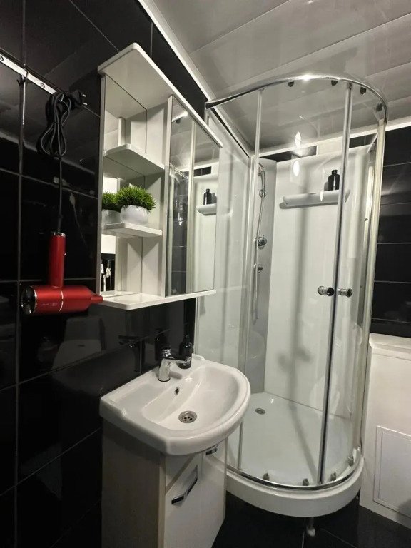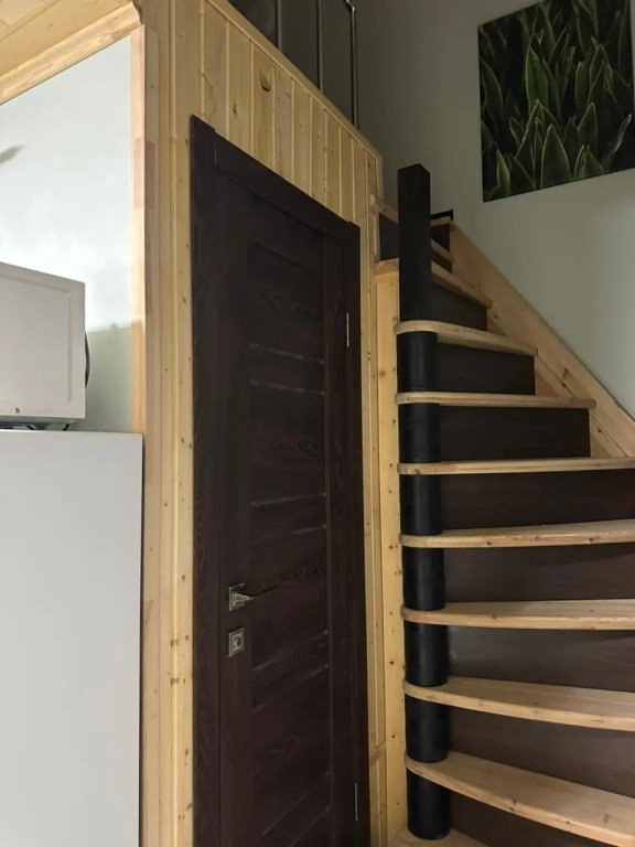 Частный дом является двухуровневым пентхаусом с высокими потолками. В распоряжении гостей диван-кровать и двуспальное место на втором уровне. Имеется небольшая кухня, оснащённая всем необходимым: есть посуда для приготовления пищи, микроволновая печь, кофемашина, сифон для газировки, чайник. Также в доме есть телевизор, безлимитный Wi-Fi, ванные принадлежности, постельное бельё и средства личной гигиены.