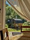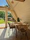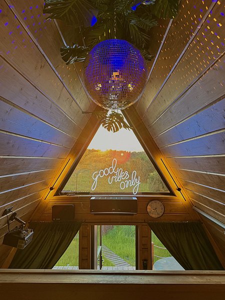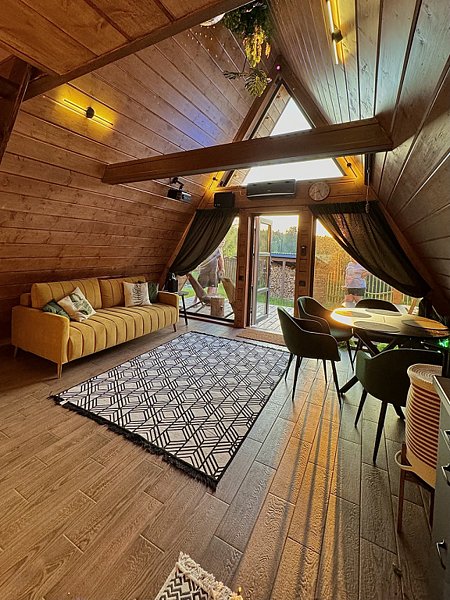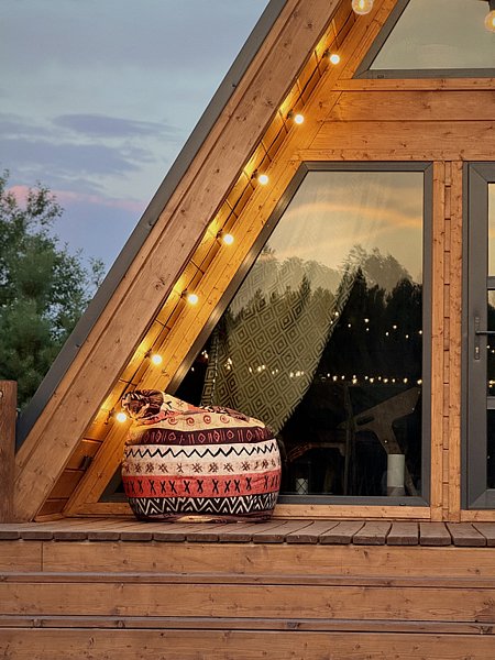 На территории глэмпинга располагаются 4 дома в стиле А-фрейм с индивидуальной закрытой территорией для каждого.