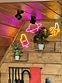 Дом в стиле неоновых джунглей - в темных тонах, с диско-шаром, цветными софитами, неоновыми вывесками-светильниками и тропической зеленью. В просторной террасе домика установлена деревянная купель из натуральной лиственницы. На территории домика располагается беседка, костровая и мангальная зоны.