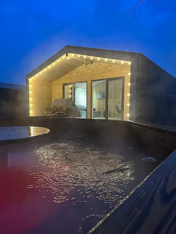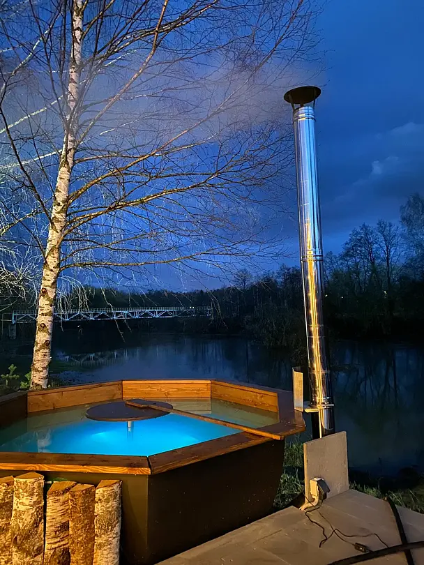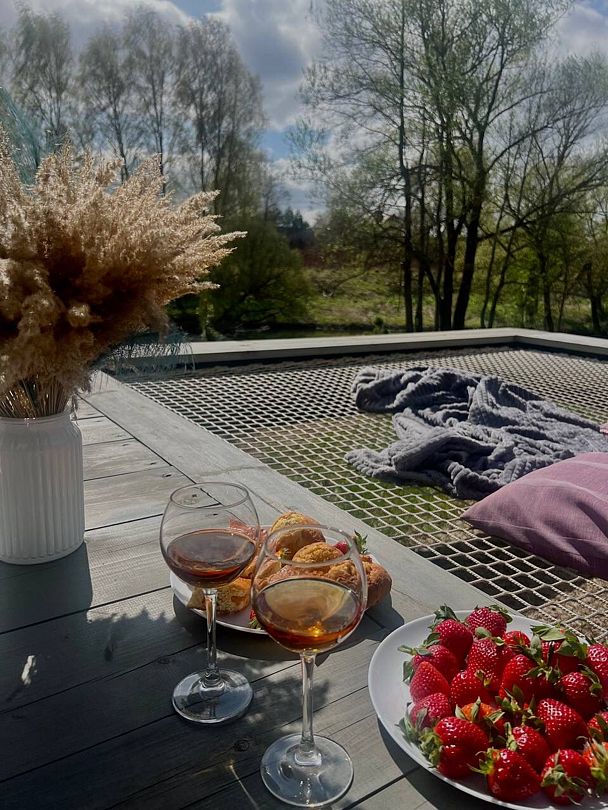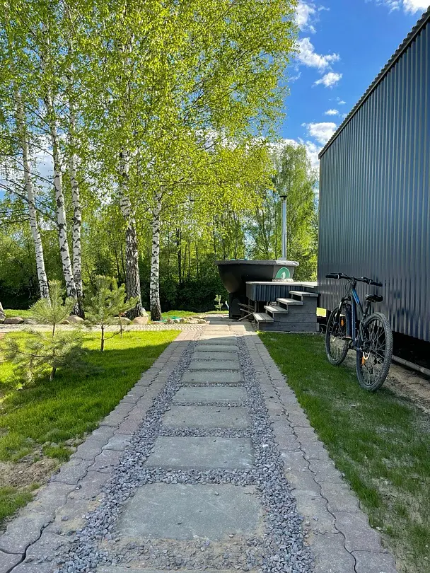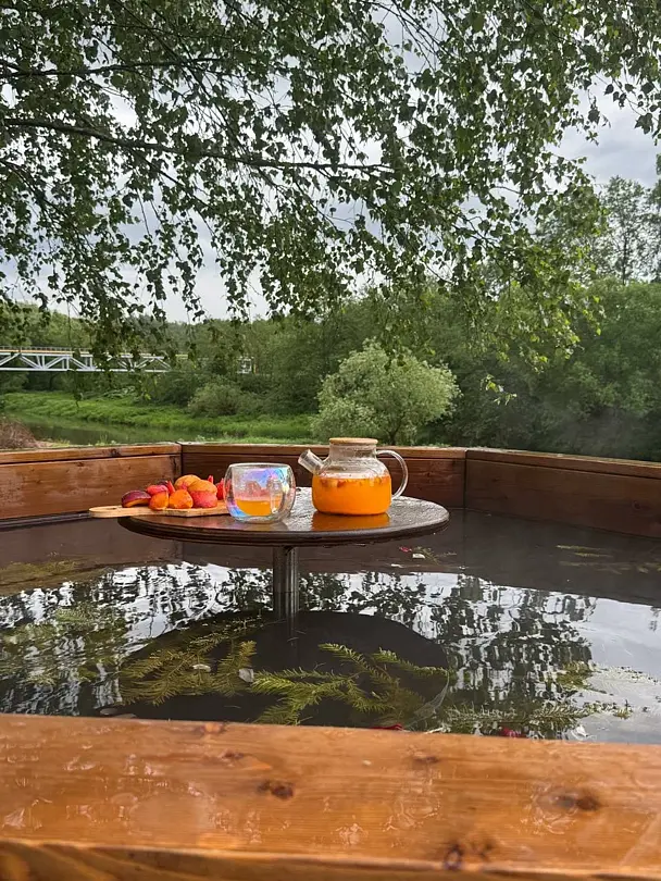На территории есть баня, мангал и чан рядом с большой террасой. В шаговой доступности находится пляж, там же можно покататься на лодке по реке.