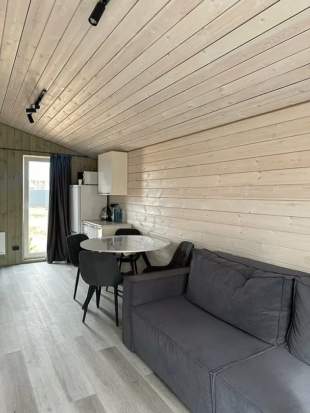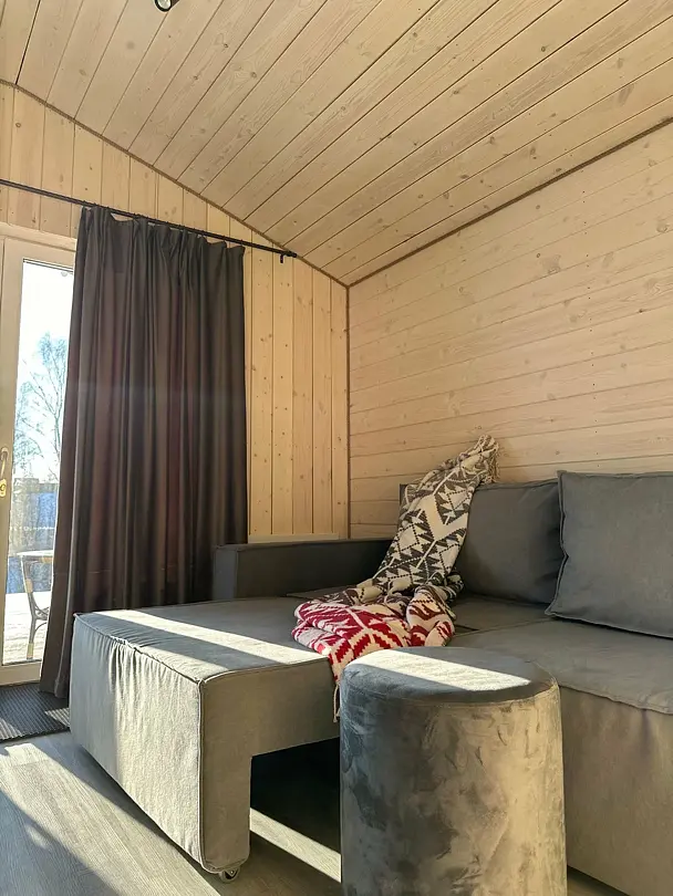 Домики расположены в экологически-чистом месте прямо на берегу реки Воря. Внутри каждого есть всё необходимое для комфортного проживания: Wi-Fi, фен, санузел, удобная мебель, чайник, холодильник, микроволновая печь и другое. Еду можно приготовить самостоятельно или же воспользоваться доставкой.
