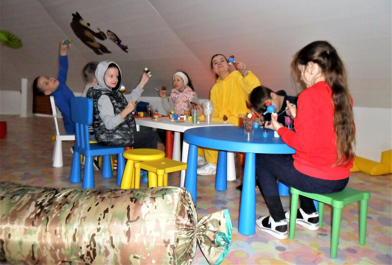 Здесь есть все необходимое для увлекательного и безопасного досуга: функциональная мебель из натуральной древесины и мягкие пуфики, большой выбор игрушек, игровые модули и игры на развитие мелкой моторики, все необходимые материалы для реализации творческих идей. Пол устлан мягким ковровым покрытием.