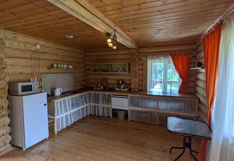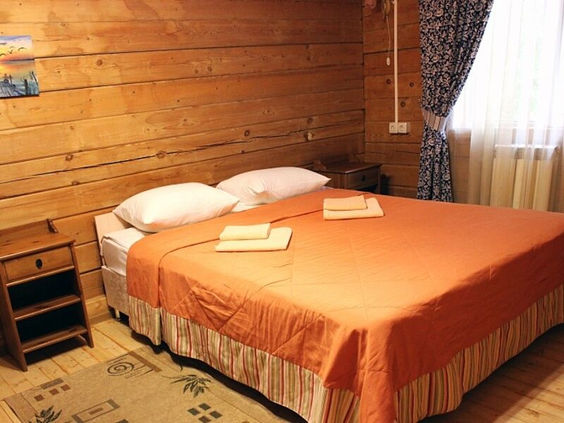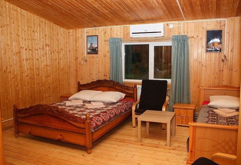 Парковая местность вмещает на своих просторах уютные тропинки в окружении деревьев, беседки, рестораны, банный комплекс и спортивные площадки. Коттеджи внутри оформлены в деревенском стиле, деревянный брус, из которого сделаны стены, создает комфортную, домашнюю атмосферу. В спальные места отделены перегородками, в домиках имеется отдельный душ и туалет, балкон, бытовая техника, кондиционеры.