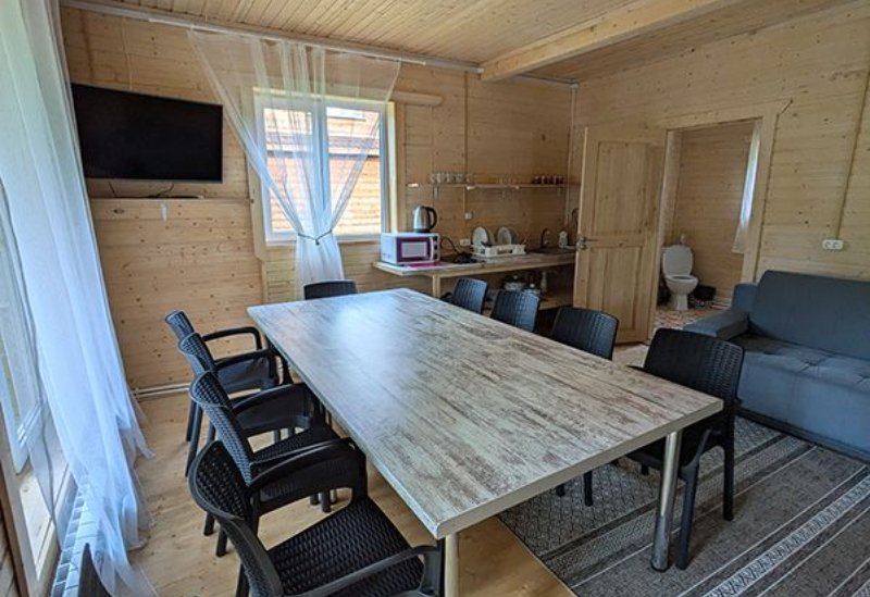 в коттедже: спальня, гостиная с кухонным уголком, 2 санузла, мангалУслуги и удобства