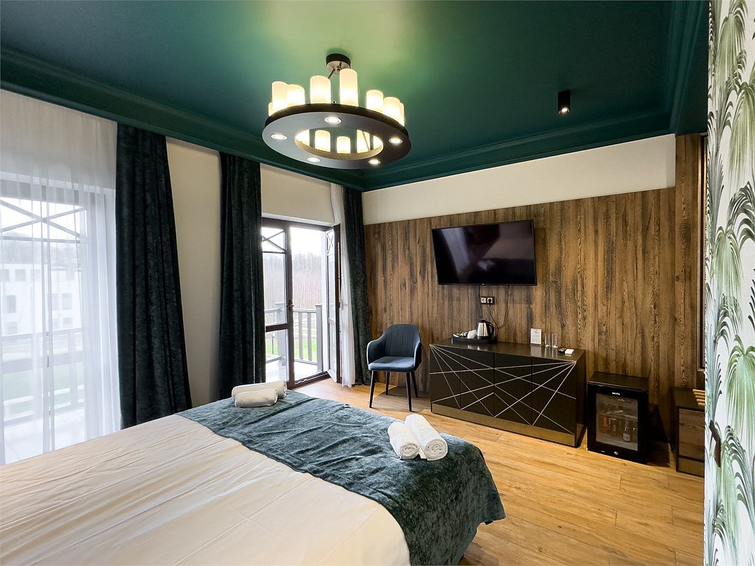 Светлая гамма интерьерных оттенков, премиальная мебель и продуманное до мелочей освещение позволяют полностью расслабиться и погрузиться в атмосферу безмятежного загородного отдыха. Большая часть номеров оснащена балконами.