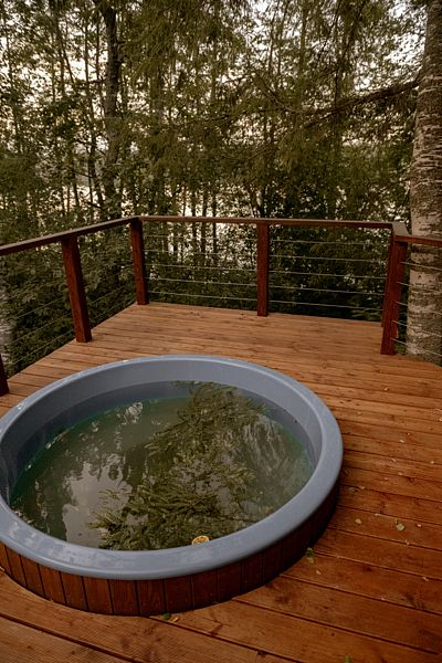 При бронировании «А-фрейм с купелью» пользование купелью оплачивается отдельно. Стоимость — 4500 ₽ к общей сумме.