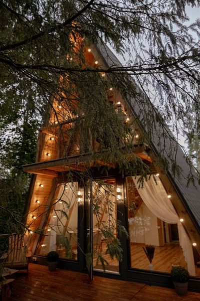 Дом в современном стиле A-frame вместимостью до 4-х человек.