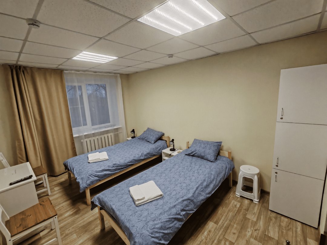 Номер с четырмя односпальными кроватями, телевизор, стол, шкаф, вешалка для одежды, санузлы и душевые на этаже,В номере