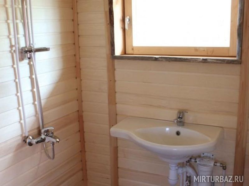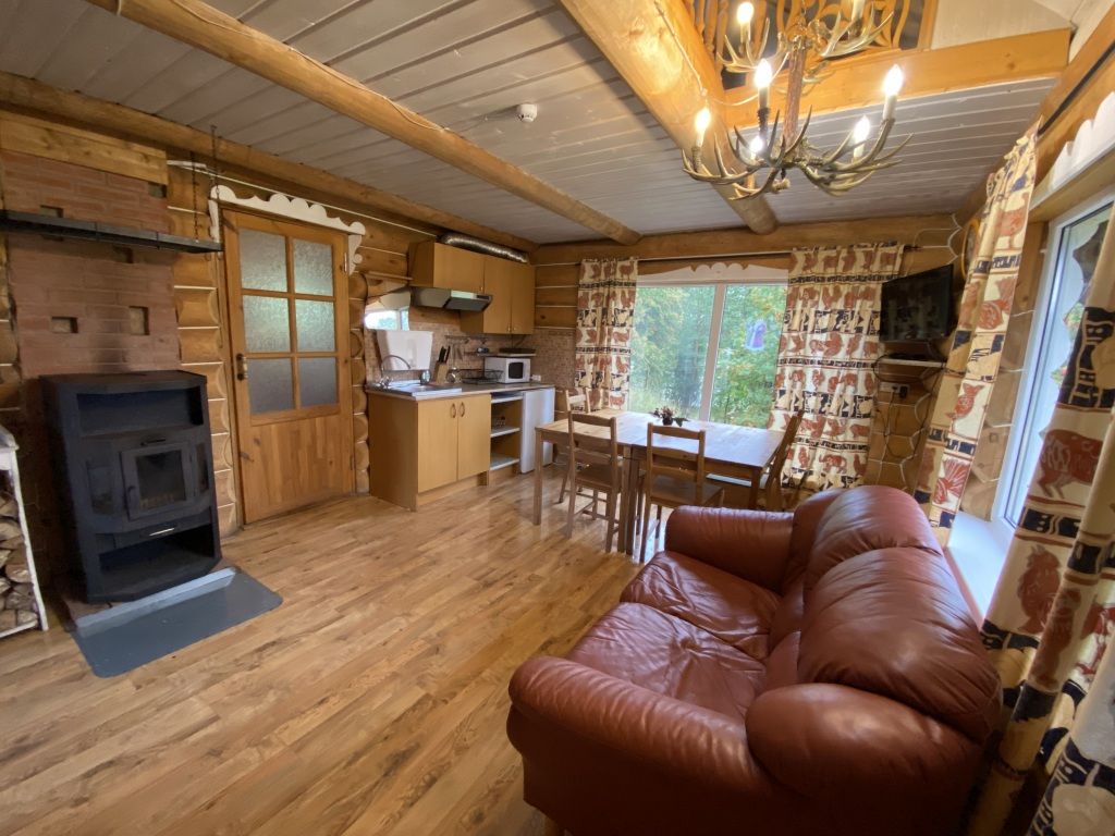В коттедже есть гостиная, кухня, одна спальня, душ, туалет, банька дровяная.