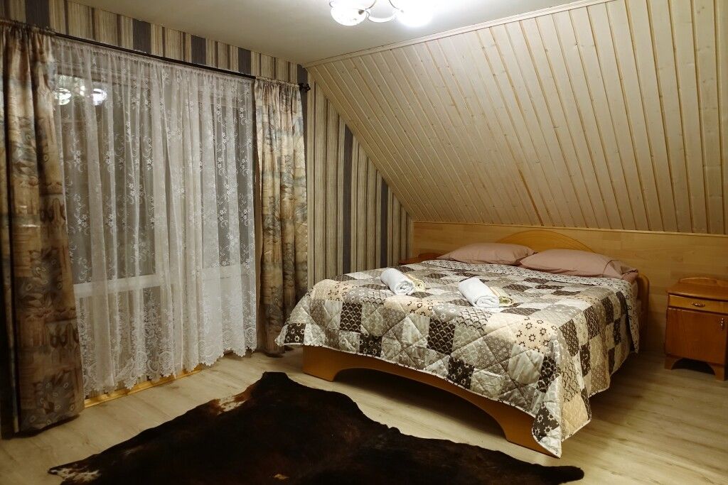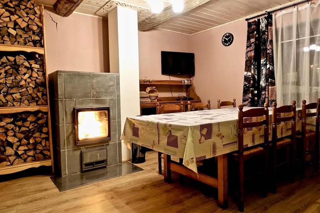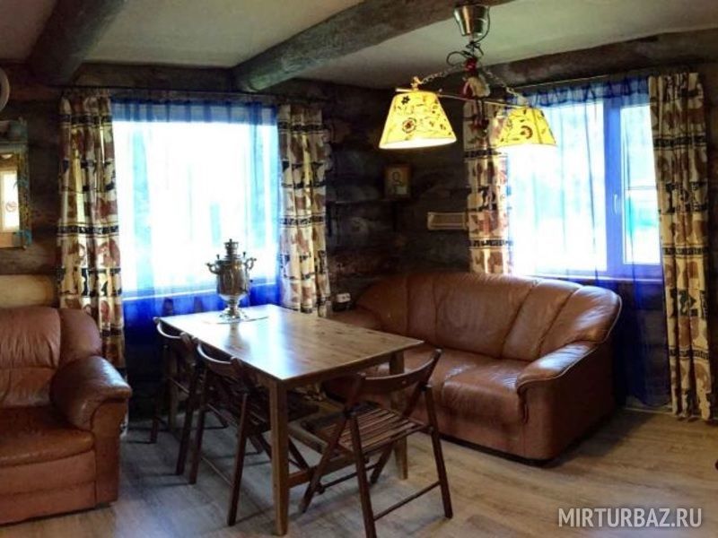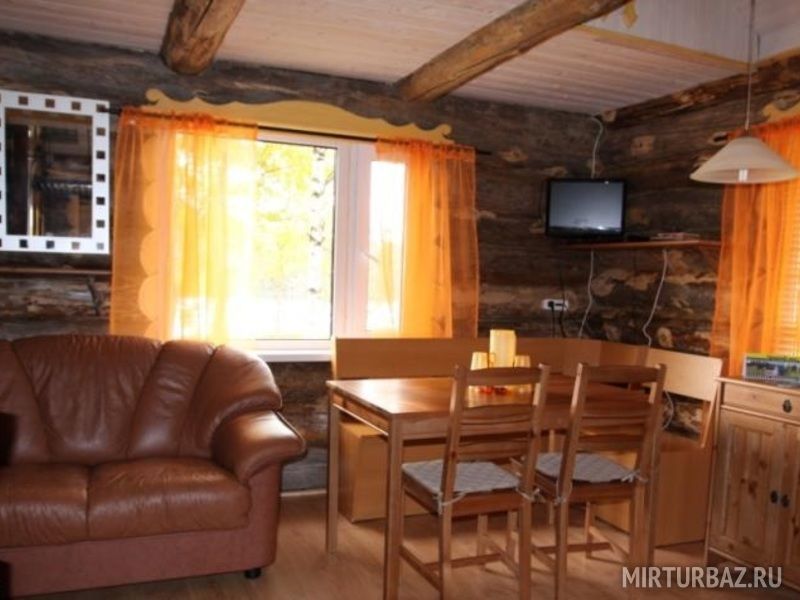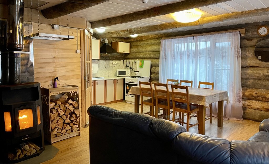 В коттедже есть гостиная, кухня, три спальни, банька дровяная, биотуалет.