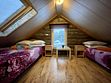 В коттедже имеется гостиная с кухней, две спальни на втором этаже, веранда, душ*, туалет, банька дровяная.
