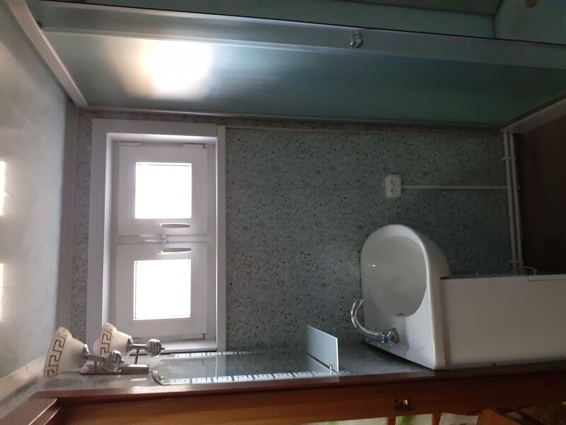 3 небольшие спальни, кухня с посудой, в доме туалет и душевая с холодной и горячей водой, холодильник, морозильный ларь, телевизор, кондиционер, чайник, набор посуды.