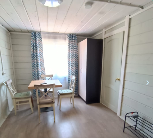 Три одноэтажных домика с двумя номерами. Уютные номера для 4-х человек с видом на персиковый сад.
