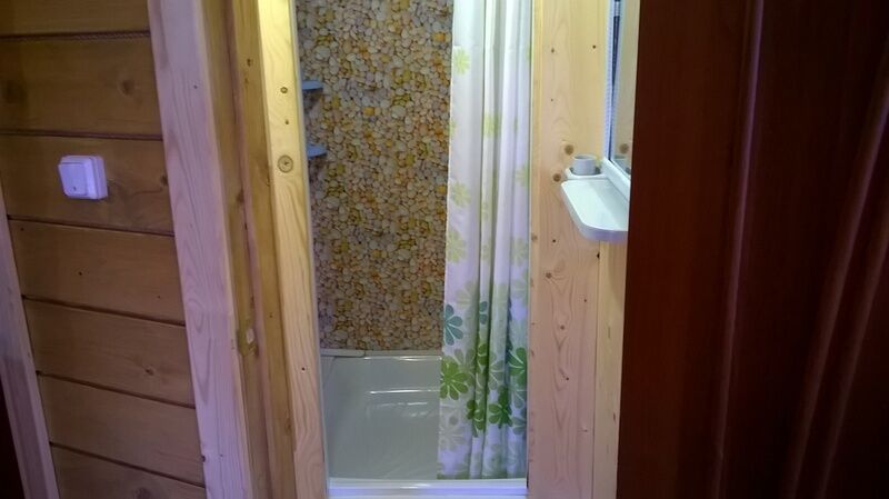 Домик 45кв.м. душ, туалет, кухня, двуспальная кровать и односпальные кровати. 2 комнаты вместимостью до 4 человек.