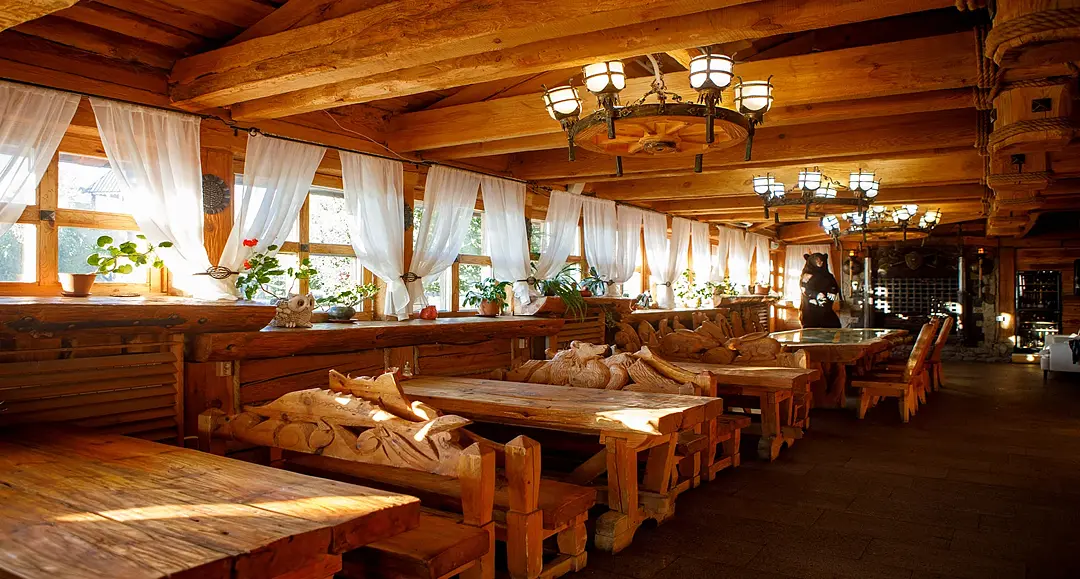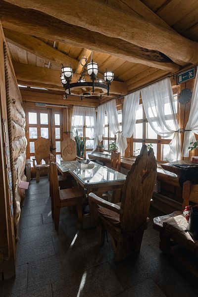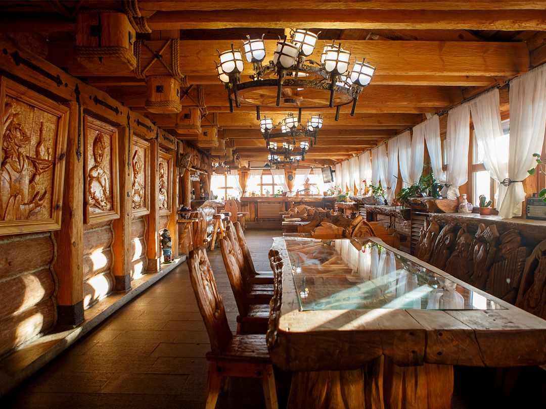 Читать полностьюРесторан поражает своим интерьером, выполненным в стиле старинного охотничьего дома. Величественные стены из кедра, украшенные охотничьими трофеями, создают особую атмосферу уюта. Здесь гостей ожидает не только изысканная русская кухня, но и атмосфера домашнего очага. В меню — ароматный домашний хлеб, аппетитная строганина, хрустящие грузди и другие кулинарные шедевры, приготовленные с душой.