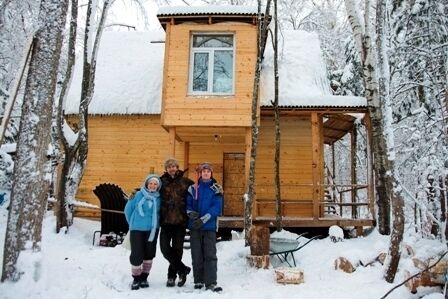 Здесь для вас приготовлены удобные деревянные домики с печным отоплением и водопроводом, окружённые лесом, каждый со своим характером и именем. Банный домик подойдёт для компании до 12 человек, семейный – имеет две комнаты, рассчитанных на 4 гостей, дуэт – уютный уединённый домик для двоих. Попариться вы можете в большой деревянной русской баньке с просторной комнатой отдыха.