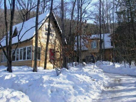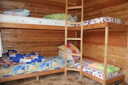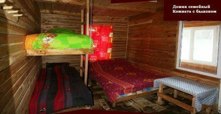Две комнаты с отдельными входами: одна на 4 человека, двуспальная кровать и двух-ярусная, застекленный балкон; вторая тоже на 4 человека: две двух-ярусные кровати, стол, табуретки, панорамное окно, печное отопление, умывальник с водопроводом, теплый санузел в домике.