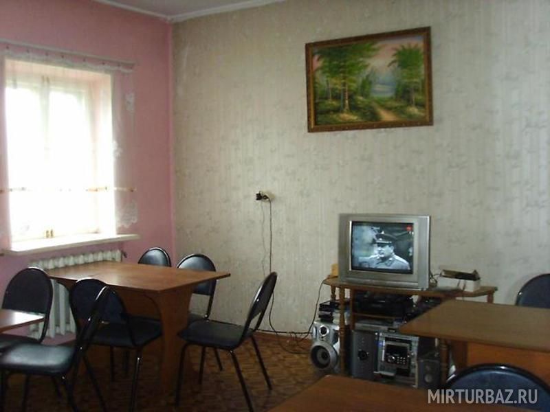 Кухня (кухонный гарнитур, эл. печь, микроволновая печь, холодильник, посуда, раковина), гостиная (обеденный стол, стулья, телевизор, небольшая библиотека), санузел (туалет, раковина, холодное водоснабжение), две 2-х местных комнаты (в каждой двуспальная кровать, тумбочки, вешалки), 4-х местная (две двухъярусные кровати, тумбочки, вешалки), 5-ти местная (две двухъярусные кровати, односпальная кровать, тумбочки, вешалки) и 7-ми местная комната (три двухъярусные кровати, тумбочки, вешалки). В каждой комнате установлены конвекторы.