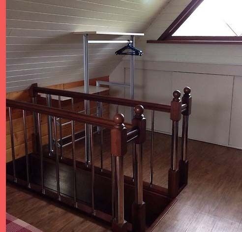 На первом этаже расположены две спальни с двумя односпальными кроватями в каждой комнате, большой холл с обеденной зоной и выделенной кухней. Гардеробная комната для верхней одежды. На втором этаже: две комнаты с двуспальными кроватями и дополнительным спальным местом (раскладное кресло), ещё одно раскладное кресло находится в холле второго этажа.