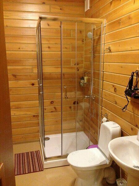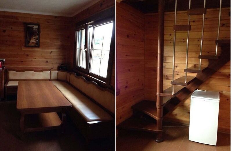 На первом этаже - комната отдыха-столовая (с холодильником, электроплитой, электрочайником, комплектом посуды), парная, душевая,туалет.