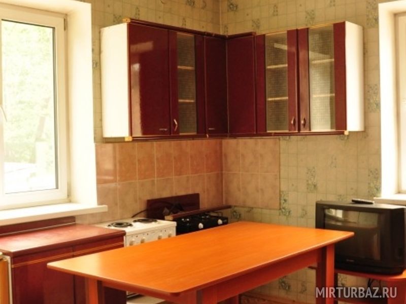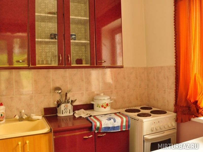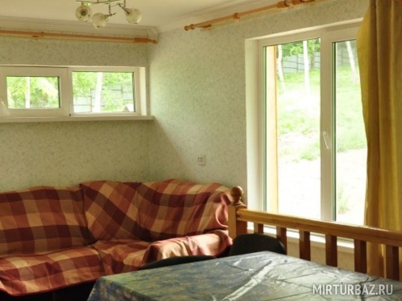 Большая гостиная-кухня (электрическая плита, газовая плита, холодильник, посуда, умывальник, большой стол на 12 человек, кресла, ТВ), диван 2-х спальный раскладной.