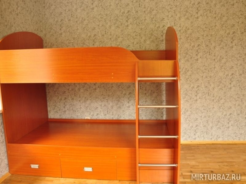 Первая спальная комната - двуспальная двухъярусная кровать, односпальная кровать, стол, стулья, телевизор;
