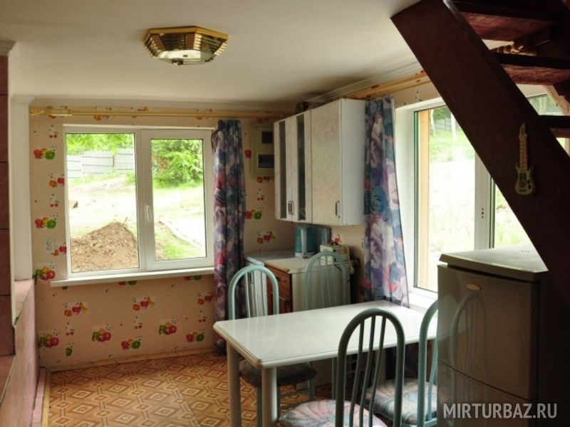 Первый этаж: прихожая, гардероб, кухня (оборудована газ. Плита, электрическая плита, телевизор, диван 2-х спальный, стол большой, шкафы кухонные, мойка для посуды), холодильник. Туалет и душ с холодным и горячим водоснабжением.