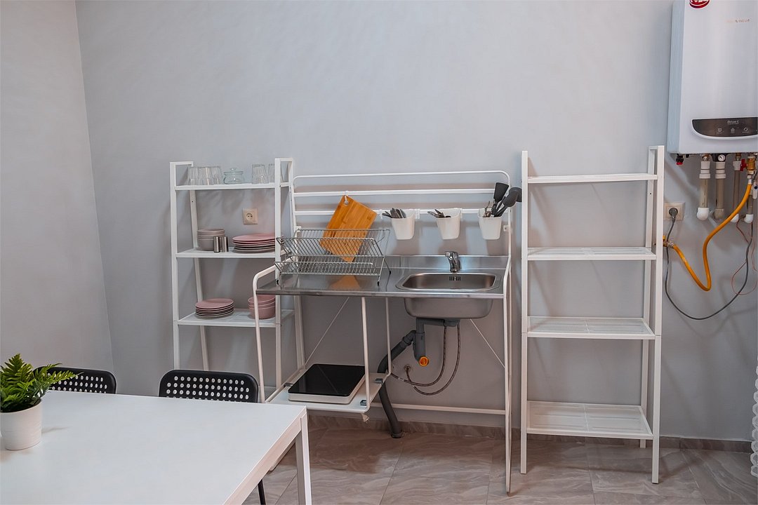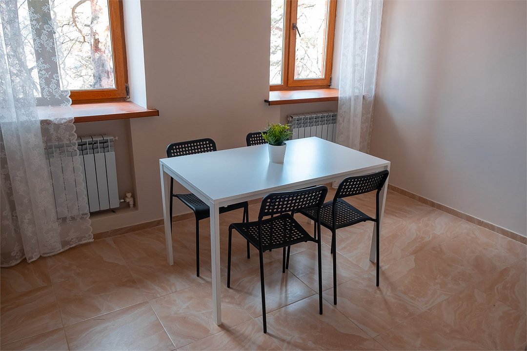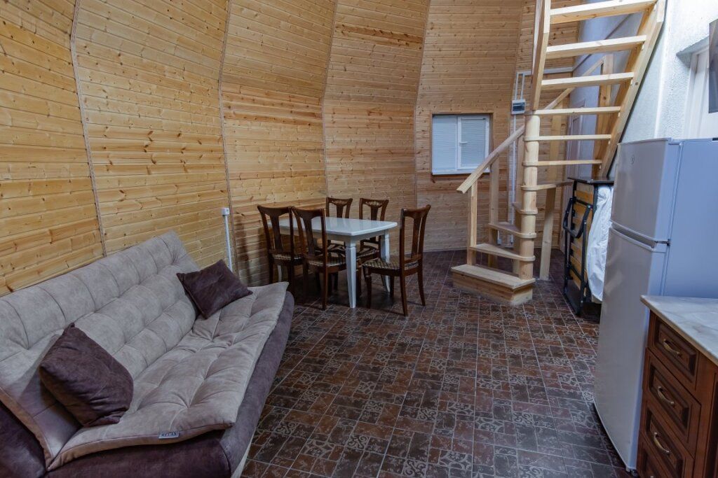 Апартаменты двухкомнатные (до 4 человек): две спальни, кухня + ванная комната. Спальня #1 — двуспальная кровать, две прикроватные тумбы, шкаф, трюмо+зеркало, плотные шторы. Спальня #2 — две односпальные кровати, две прикроватные тумбы, шкаф, плотные шторы. Кухня: оборудованная стенка, холодильник, газовая печь, телевизор, стол+стулья, набор посуды на 4 человека. Ванная комната: ванна, умывальник, санузел, ванные принадлежности. Рядом с апартаментами оборудована общая мангальная зона. У каждого номера отдельная беседка.Услуги и удобства