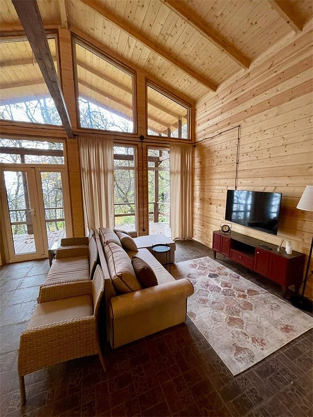 телевизор, Wi-Fi, холодильник, плита для приготовления пищи, обогреватель, ванная комната, ванна, санузел, водонагреватель, банные полотенца, гигиенические средства, двуспальная кровать, две полутораспальные кровати, диван, стулья, шкаф для одежды, вешалки, журнальный столик, обеденный стол, зеркало, чайный набор, чайник, раковина, питьевая вода, отопление, душ, кухонная посуда, столовые приборы, стул, стол, тумба, туалетные средства, цифровое тв, диван-кровать, раскладной диван, кухонный уголок, вид на горы, телевизор со Smart TV, вид на лесВ коттедже