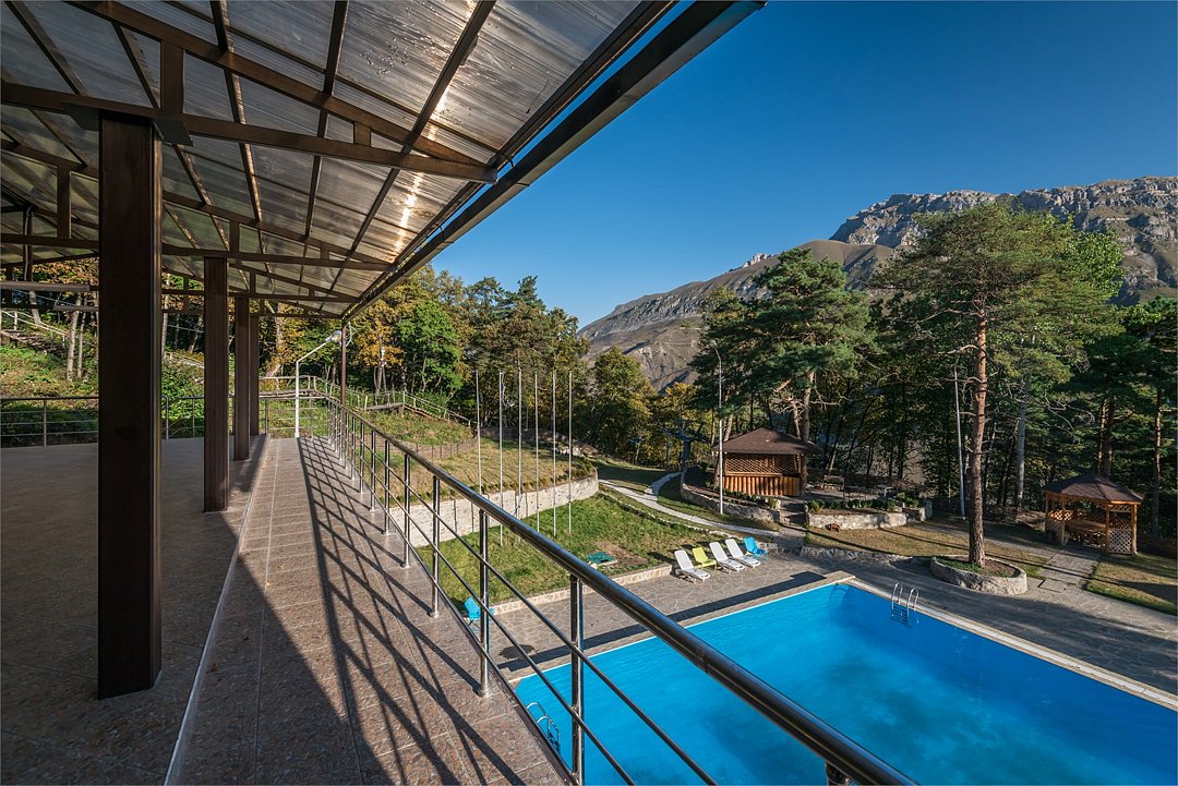Двухэтажный комфортный коттедж-баня с кухней, посудой, собственной системой отопления для комфортного проживания в любое время года. На втором этаже располагаются места для отдыха, на первом этаже располагается душевая, ковш-ведро с водой. На территории находится мангальная зона. В 30 метрах от дома-бани располагается крытый всесезонный отапливаемый бассейн. В 120 метрах (подъем по лестнице здоровья) располагается ресторан Эрзи, который всегда готов вам предложить национальную ингушскую, узбекскую, русскую и кавказскую кухню, прохладительные напитки.Услуги и удобства