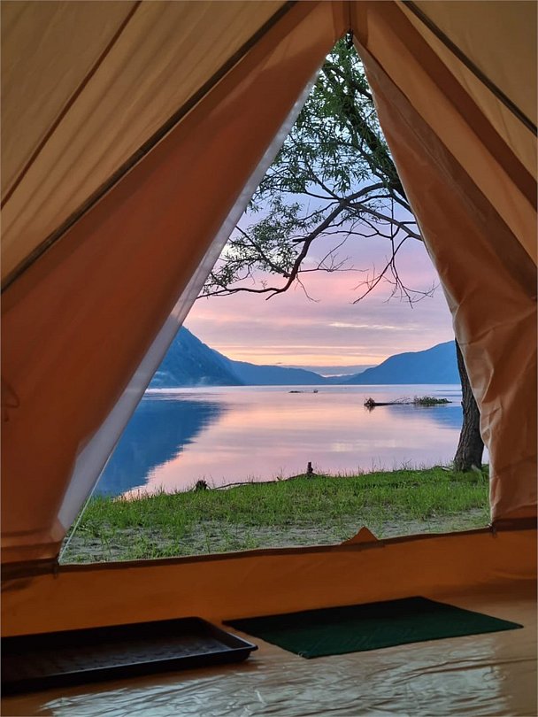 На расстоянии семисот метров от глэмпинга расположена коса Телецкого озера, откуда открывается живописный вид. Совершите прогулку до озера — это может стать прекрасным финалом вашего незабываемого отдыха.