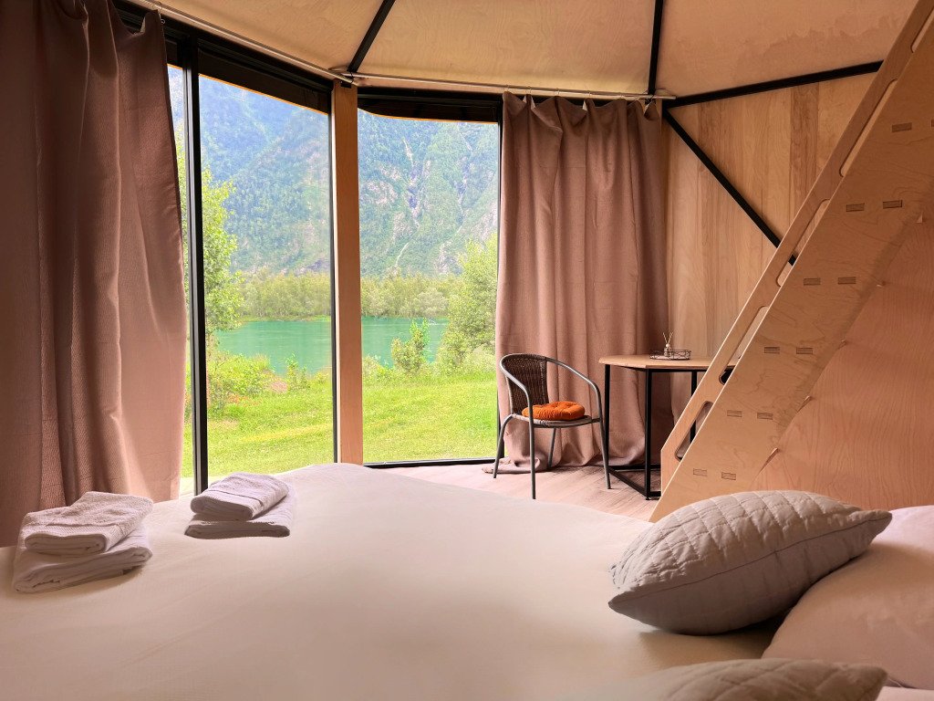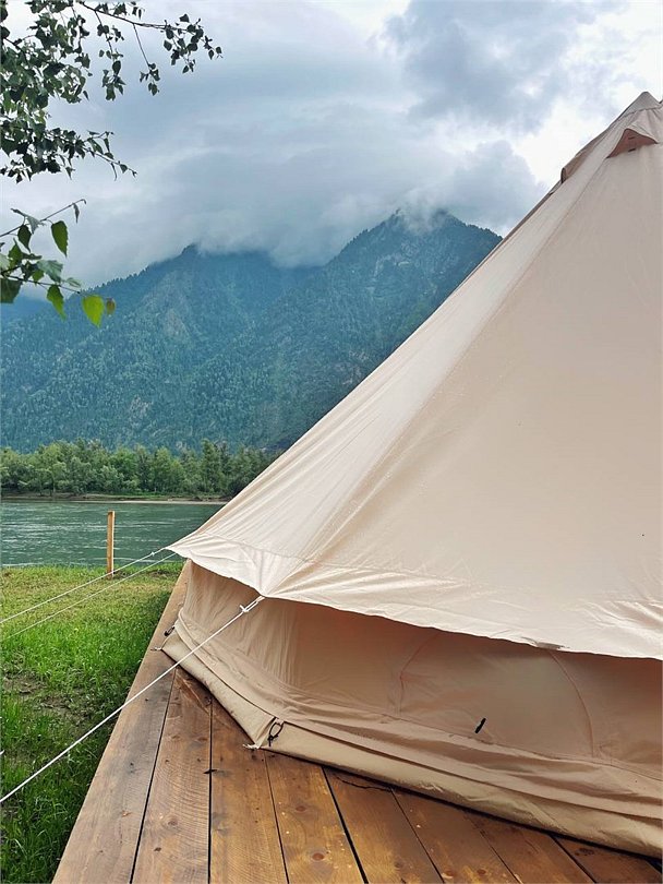 Тент-дом с видом на гору и реку