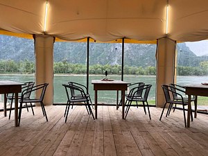 Шатер с видом на гору и реку