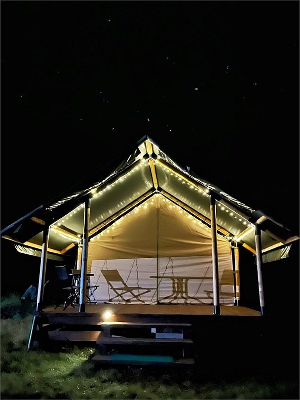 Шатер (палатка с комфортом отеля). Для желающих окунуться в настоящую походную романтику и уединение с природой, не теряя комфортное и уютное размещение.