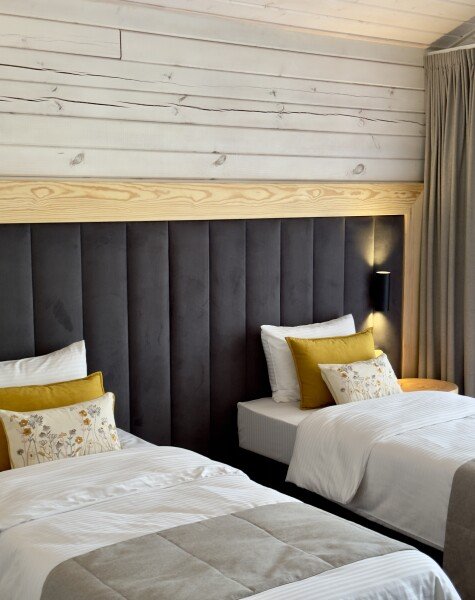 Двухместные номера класса Комфорт — это уютный и стильный интерьер, выполненный в авторском дизайне.