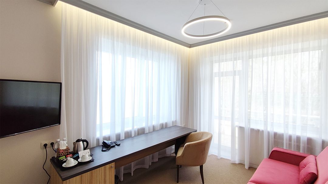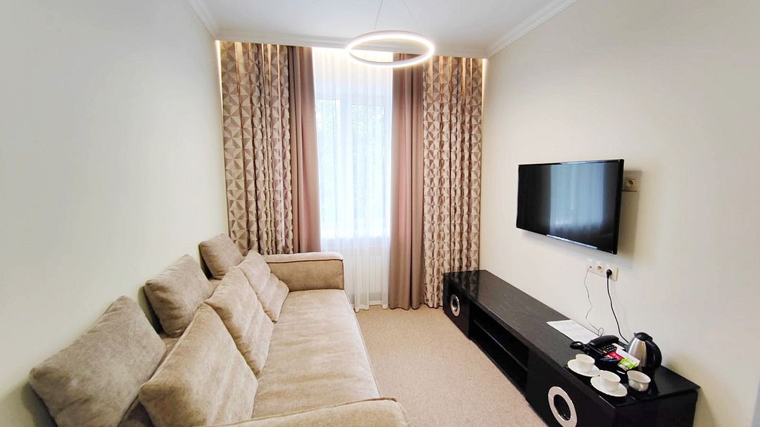 Номер студийного типа в главном корпусе. Идеально подходит для гостей, любящих уют в сочетании с максимальным комфортом. Фотографии номеров могут отличаться.