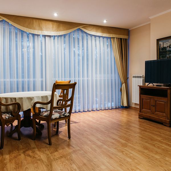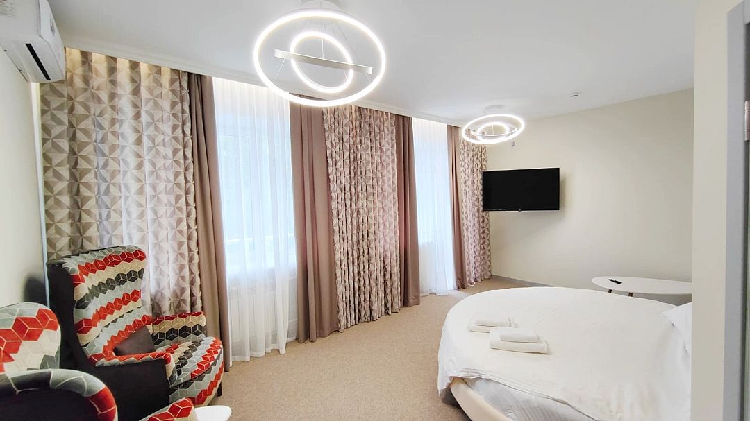 Номер студийного типа в VIP-корпусе. Идеально подходит для гостей, любящих уют в сочетании с максимальным комфортом. Ковровое покрытие есть не во всех номерах данной категории. Фотографии номеров могут отличаться.