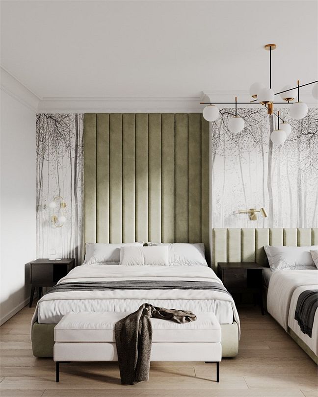 Две односпальные кровати, одна двуспальная кроватьВ гостиничном номере