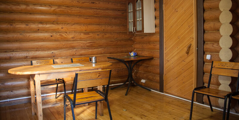 В срубах имеется: Мягкая мебель, холодильник, TV, сплит система, туалет, душ.