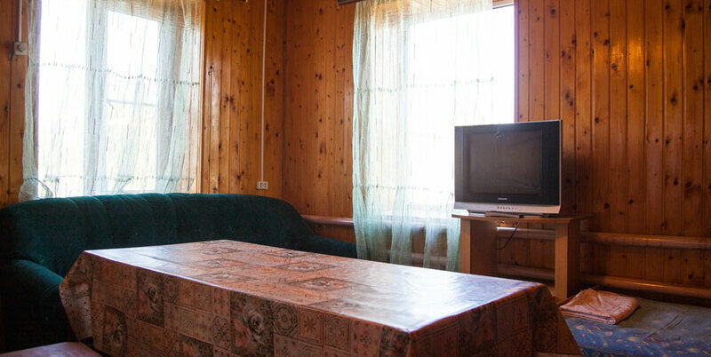 Для гостей предусмотрены следующие варианты бронирования: летние домики эконом-класса с удобствами, деревянные срубы на несколько номеров, а также отдельные коттеджи класса люкс. На территории турбазы есть бесплатная охраняемая парковка, кафе с отличной кухней, продуктовый магазин.