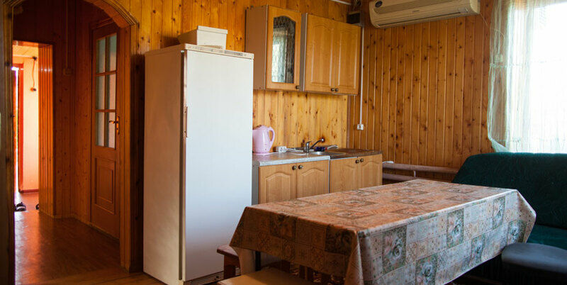 Две четырехместные спальни и одна двухместная. В домике имеется: мягкая мебель, кухня, холодильник, TV, сплит система, электрическая плита, чайник, туалет, душ, стиральная машинка.
