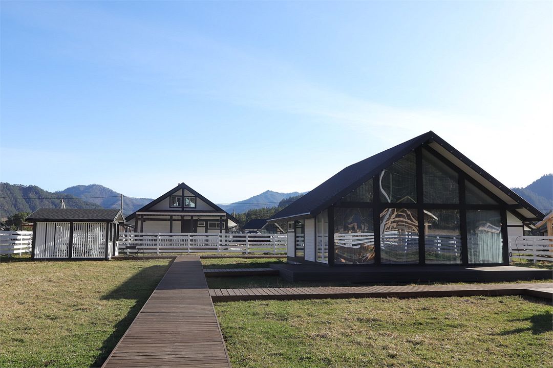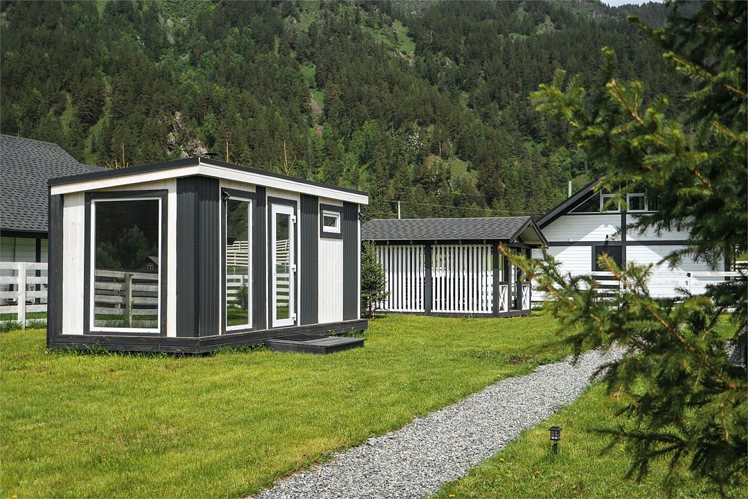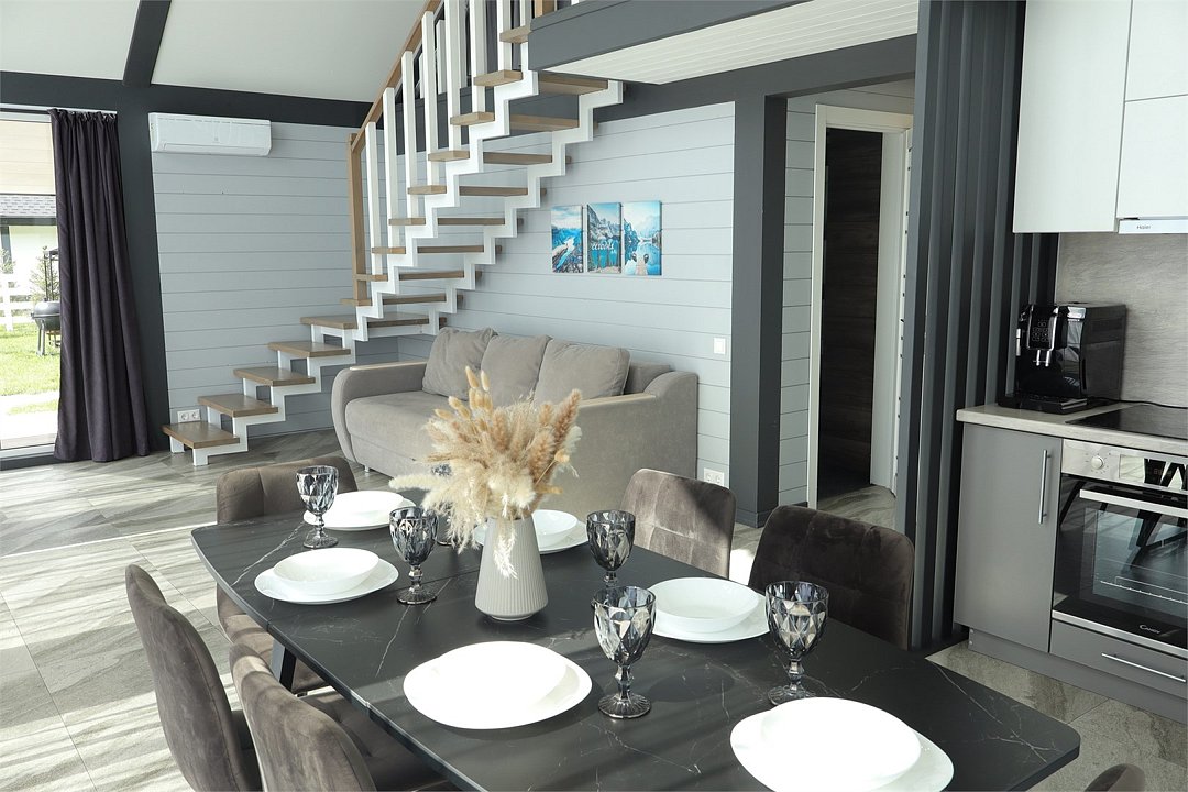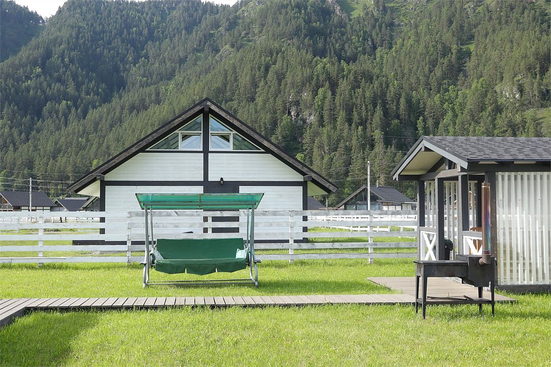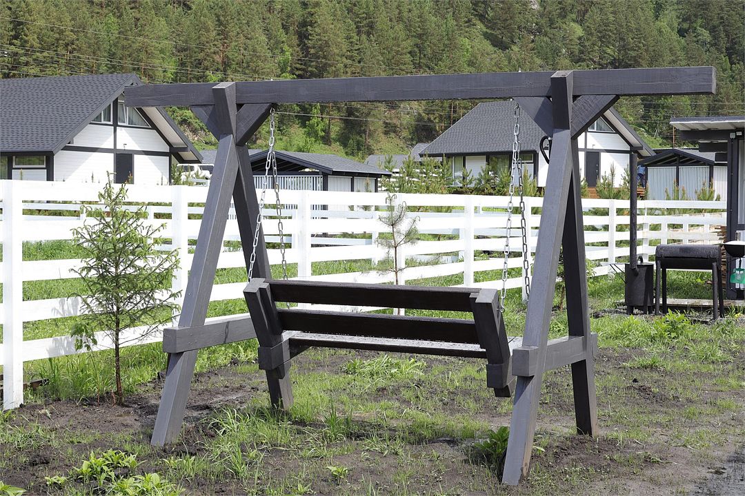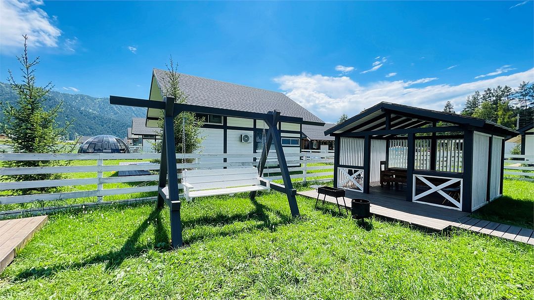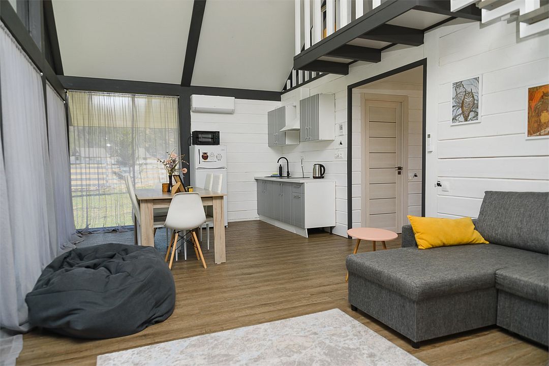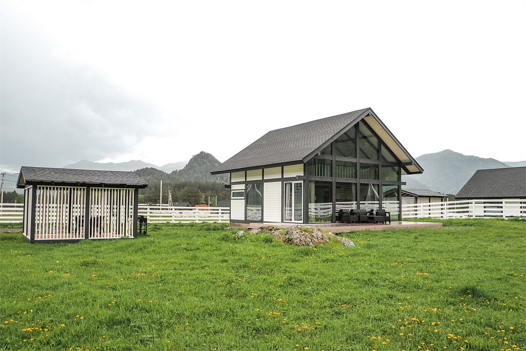 Комплекс включает в себя стильные двухэтажные коттеджи, у каждого есть собственный огороженный участок. В домах имеется все необходимое как для краткосрочного, так и для длительного проживания: объединенная с гостиной кухня, оборудованная техникой и посудой, уютные спальни, ванная комната с душевой кабиной, феном и туалетные принадлежностями. В каждом коттедже своя терраса, откуда открываются красивые виды. Для любителей мяса на углях на участке оборудована мангальная зона и беседка, на некоторых территориях имеются качели и установлены банный чан.