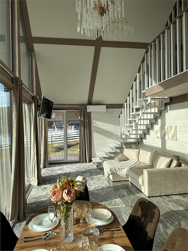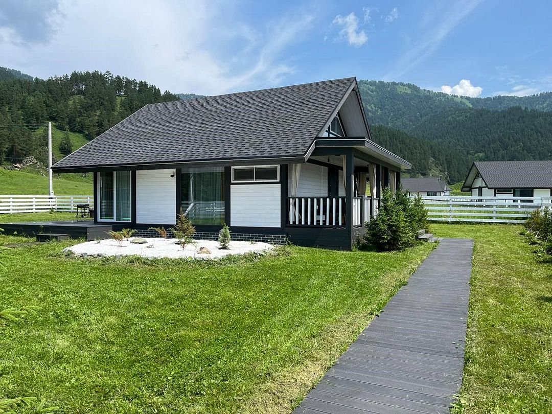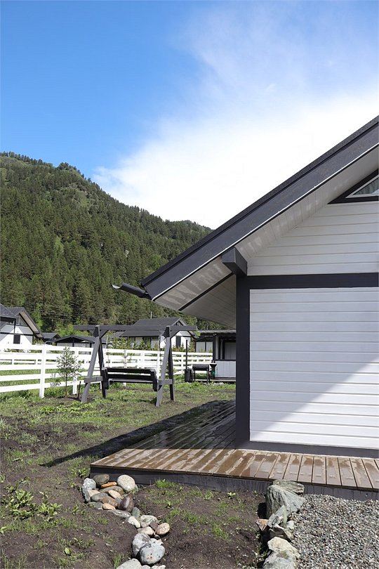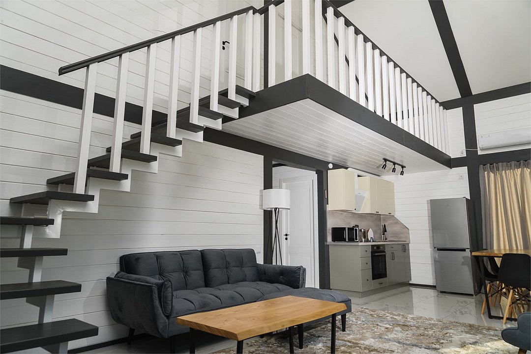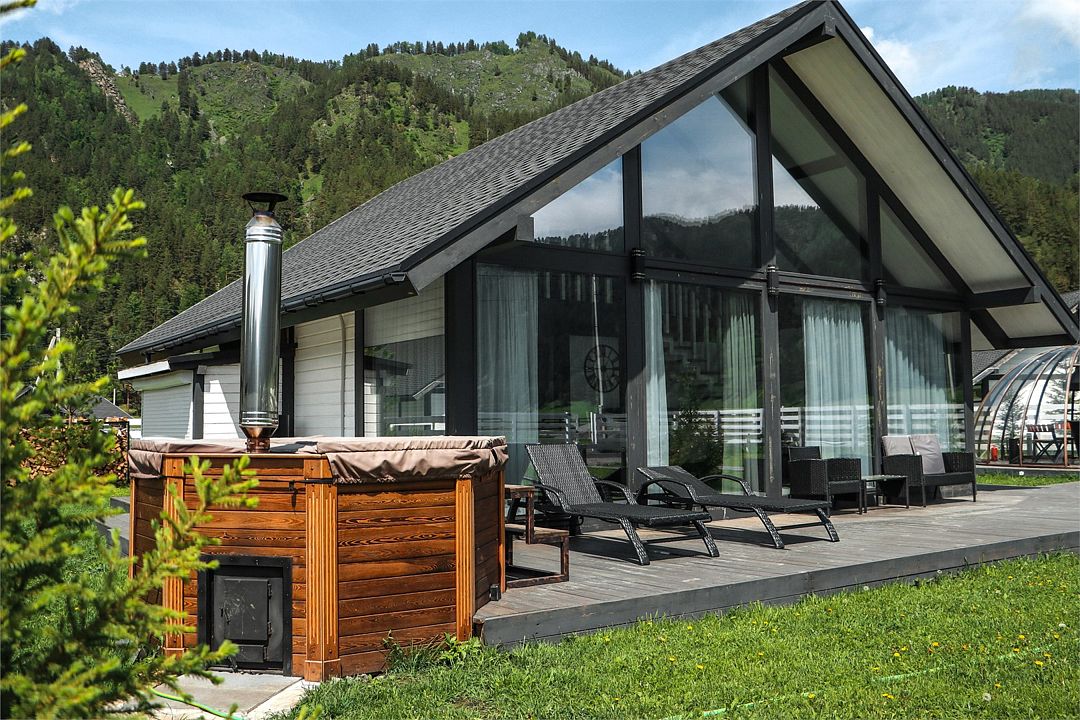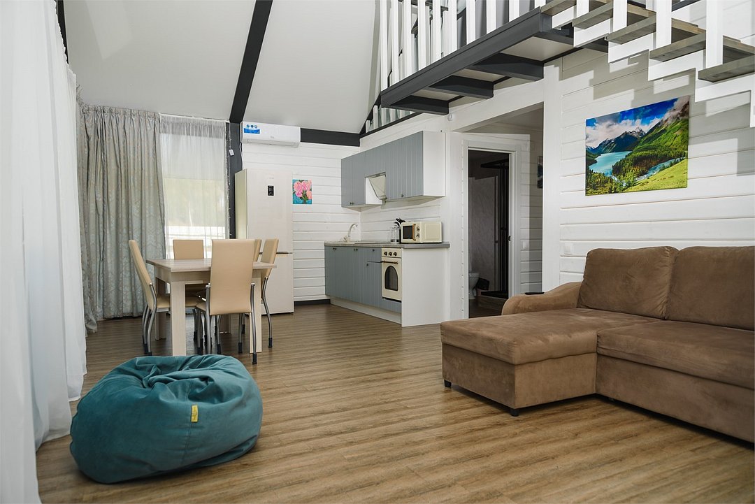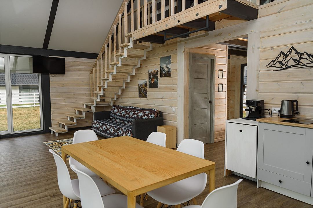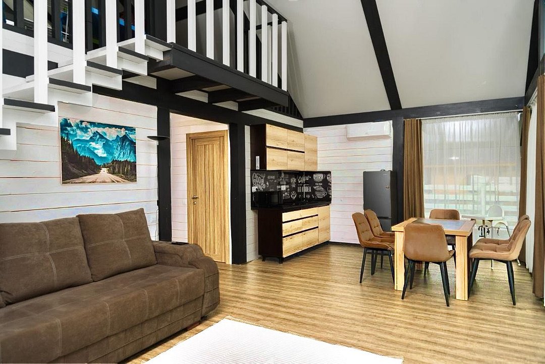 Комплекс включает в себя стильные двухэтажные коттеджи, у каждого есть собственный огороженный участок. В домах имеется все необходимое как для краткосрочного, так и для длительного проживания: объединенная с гостиной кухня, оборудованная техникой и посудой, уютные спальни, ванная комната с душевой кабиной, феном и туалетные принадлежностями. В каждом коттедже своя терраса, откуда открываются красивые виды. Для любителей мяса на углях на участке оборудована мангальная зона и беседка, на некоторых территориях имеются качели и установлены банный чан.